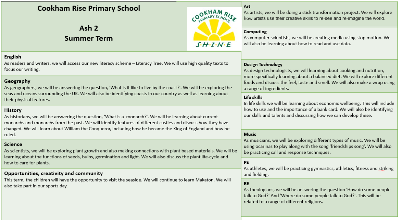 The main class teacher is Mrs Collibee and Mrs Pocock will be supporting as the teaching assistant. Mrs Maher will teach the children on a Friday morning as PPA cover, and Mr Brown will be teaching PE on a Monday morning. We aim to build your child's confidence and independence during their time in year 2 and prepare them for KS2.