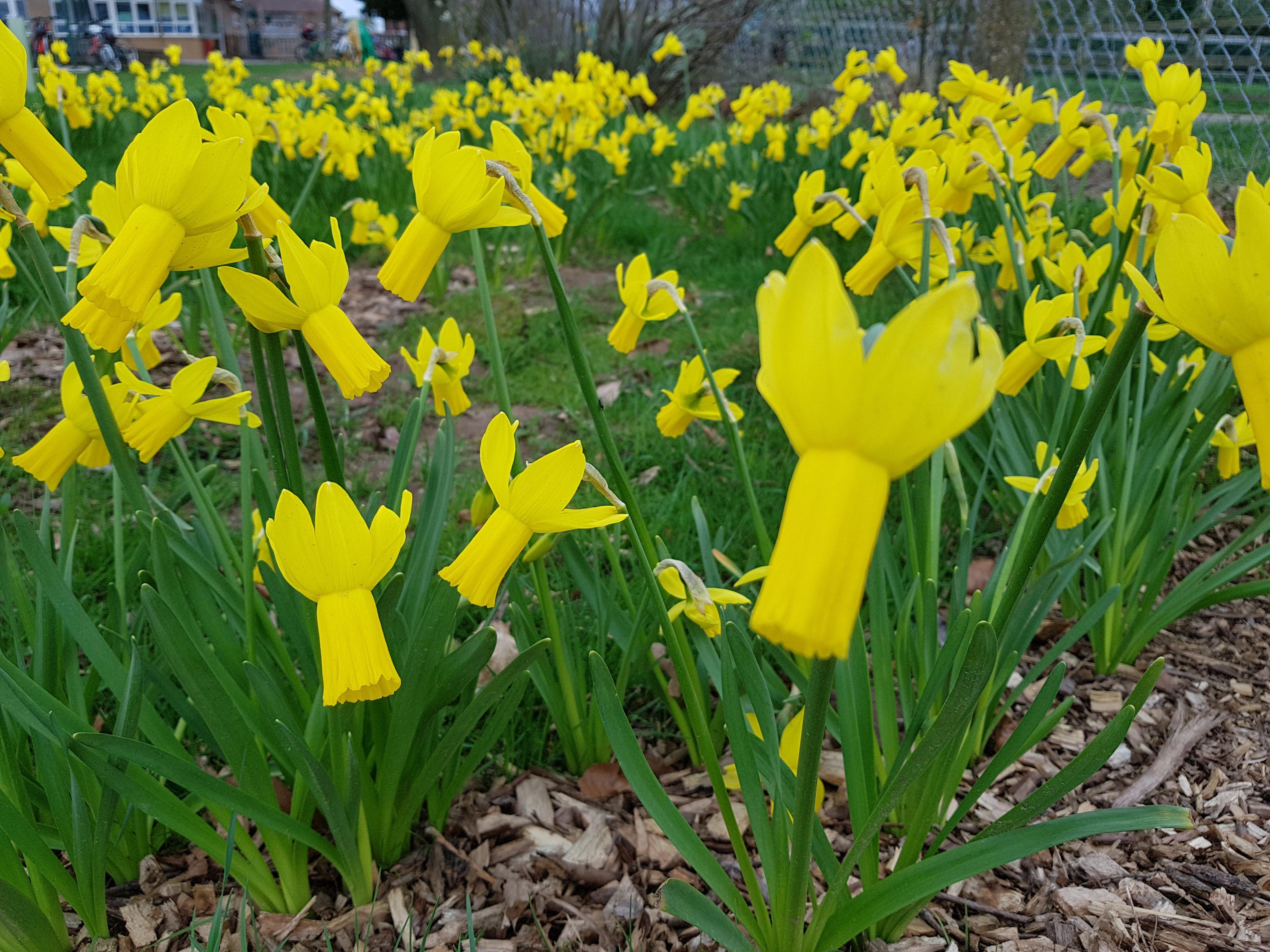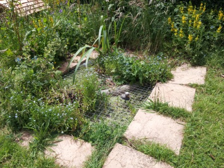 A Song Thrush has been spotted breaking open his snail dinner on the slabs, lets hope she is still around to help us with the snails! In this area we also have two raised beds, our Eden style dome, two water butts, four compost bins and a log pile. We have also haddonations of old RBWM recycle bins which we have used to grow our herbs and an ornamental grass. We have planted Bamboo next to the pond which we hope will create a beautiful backdrop to our garden as well as add to the sensory idea. We now have a hedgehog house which we hope will be used this year. We have added an ornamental pond which has been stocked with fish donated to us from two lovely local people and a willow dome which we hope will grow into a lovely enclosed play den and wildlife haven.