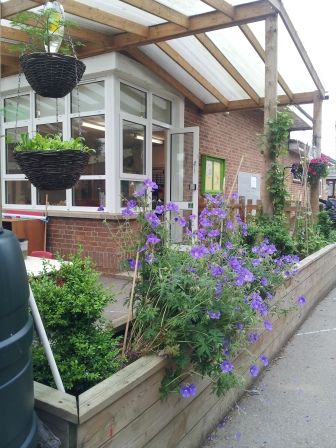 In the Key Stage 1 shelter we have had grapes on our Grape Vine and the Box bushes are establishing well. As part of the RHS Cookham In Bloom Edible Garden Theme 2012 this area was planted with runner beans, broad beans, peas and french beans as well as the usual mix of summer bedding and herbaceous plants.