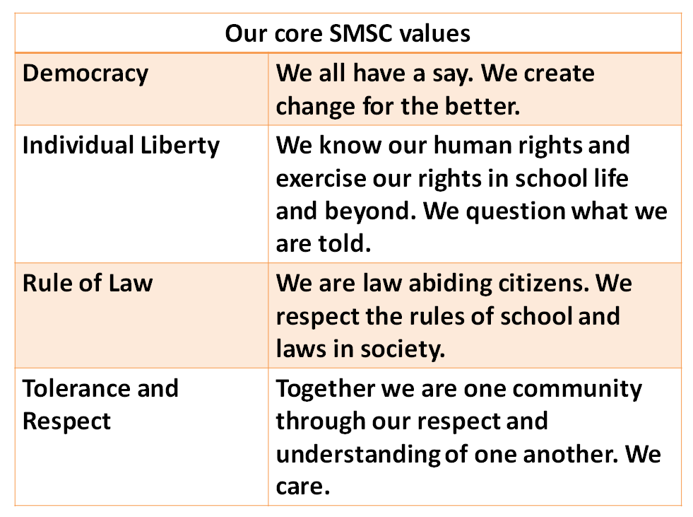 As a school we promote the fundamental British values of democracy, the rule of law, individual liberty, and mutual respect and tolerance of those with different faiths and beliefs.