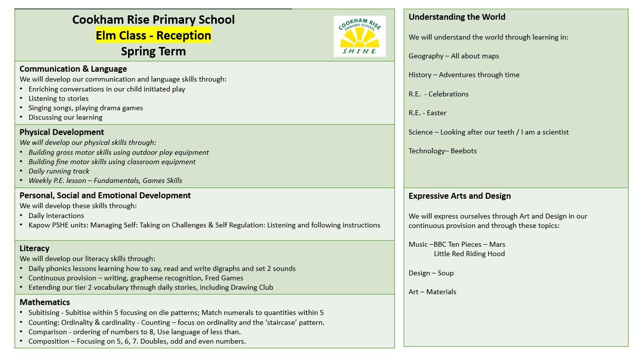 We will continue to build on all the wonderful things your children have learned in the first term.  You will see their reading develop and they will be exposed to more sounds and they will be supported in developing their writing skills; through supported work and through their independent choices.