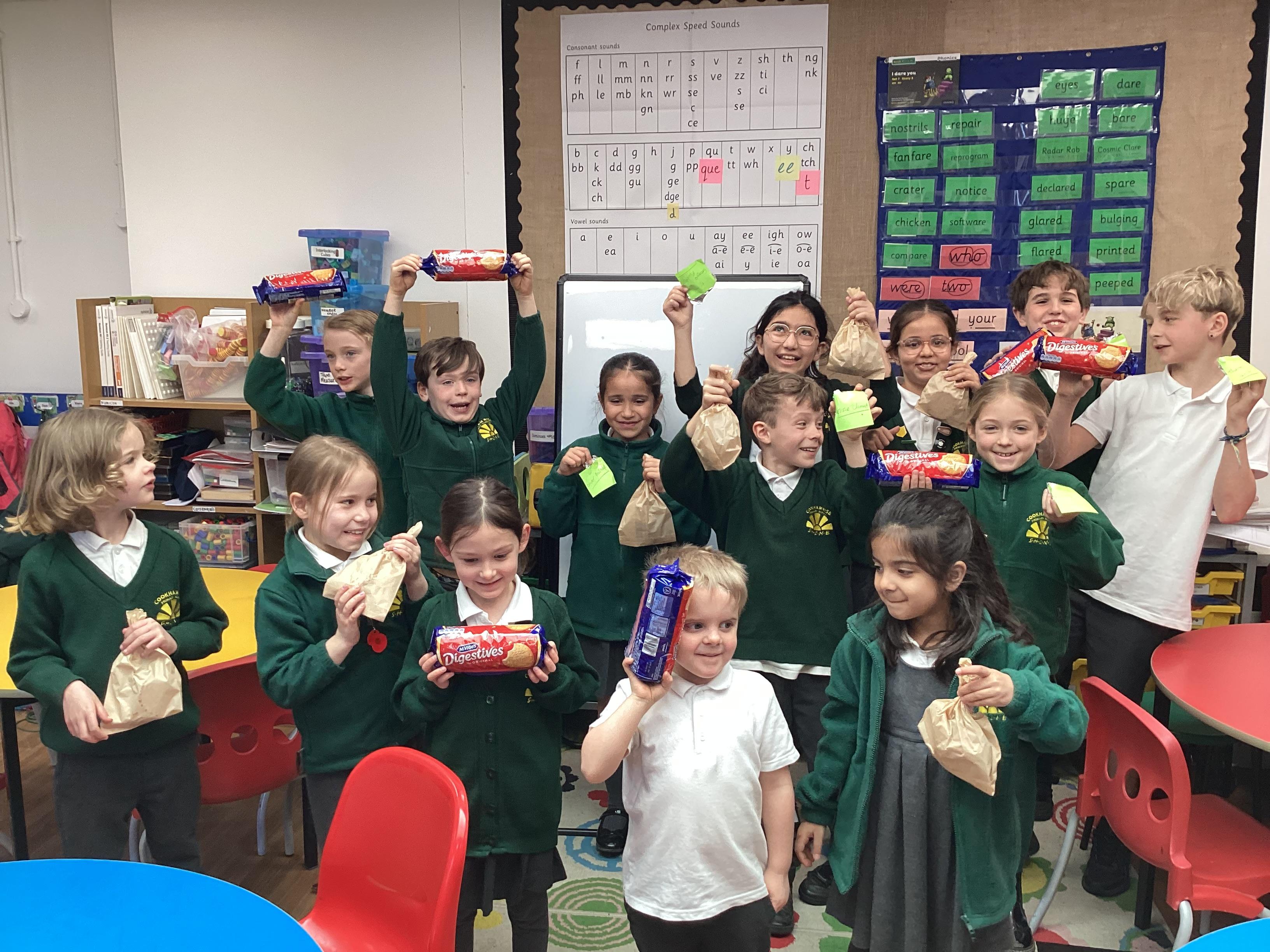 The school council representatives came up with many ideas in their suggestion bag from each class. One such idea was to have Biscuit Fridays at school! Although we are unable to make that happen every week, we enjoyed a one off event on Friday 21st March. We ensured allergies were catered for and every child and adult in the classes enjoyed this little treat. Here is a photo of the representatives eagerly collecting their biscuits...