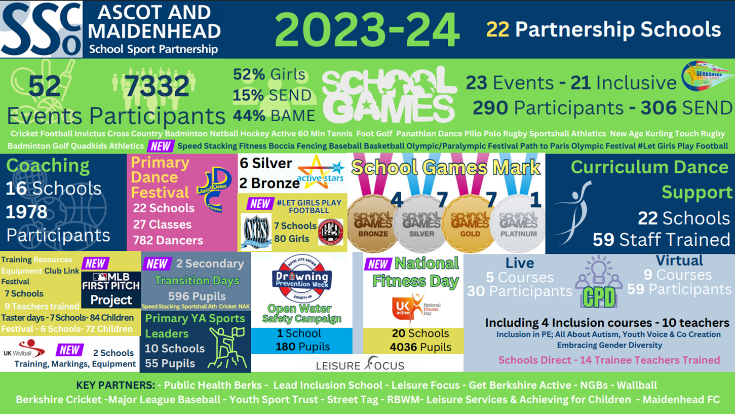 We are active participants in the Ascot and Maidenhead School Sports Partnership and use some of our allocated money to buy into this. Some of the benefits can be seen in the document below.
