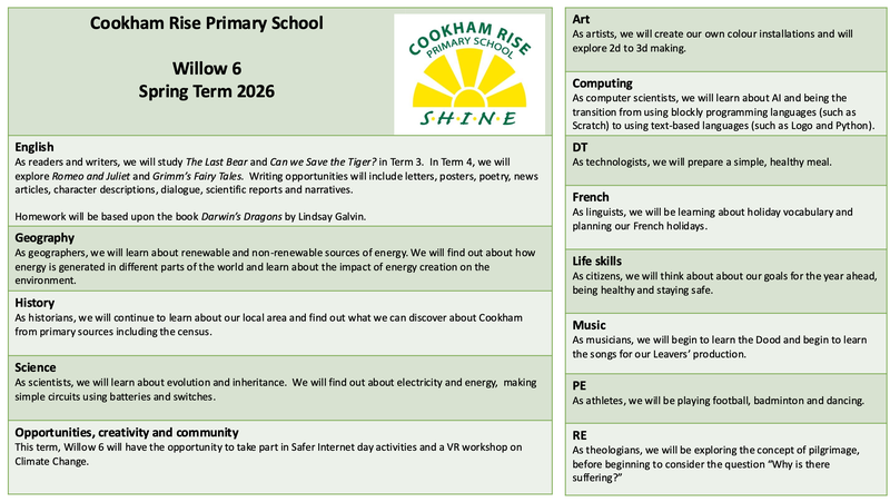 We are looking forward to the spring term in Willow 6, where we will be learning about animals, climate and the environment.